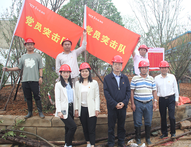 最后,大家扛起黨員突擊隊隊旗在園區內插旗定“區”,讓黨旗飄揚在項目現場,責任區公示在工地各處。