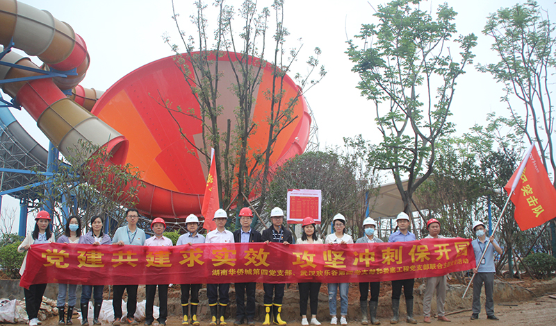 5月27日下午,湖南華僑城第四黨支部、武漢歡樂谷第四黨支部和婁底工程建設有限公司黨支部在水公園項目部會議室和建設現場開展黨建共建求實效 攻堅沖刺保開園聯合主題黨日活動。湖南華僑城監事會主席于吉林、財務副總監雷金城、武漢歡樂谷駐衡陽項目負責人王華、婁底工程黨支部書記林有良、副總經理彭洪偉以普通黨員身份出席,三方黨員、發展對象、入黨積極分子和員工代表參加活動。