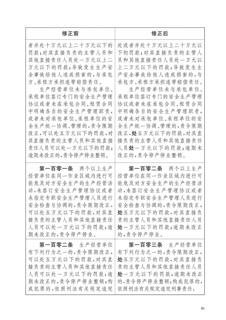 第一百零四條兩個以上生產(chǎn)經(jīng)營單位在同一作業(yè)區(qū)域內(nèi)進行可能危及對方安全生產(chǎn)的生產(chǎn)經(jīng)營活動,未簽訂安全生產(chǎn)管理協(xié)議或者未指定專職安全生產(chǎn)管理人員進行安全檢查與協(xié)調(diào)的,責令限期改正,處五萬元以下的罰款,對其直接負責的主管人員和其他直接責任人員處一萬元以下的罰款;逾期未改正的,責令停產(chǎn)停業(yè)。