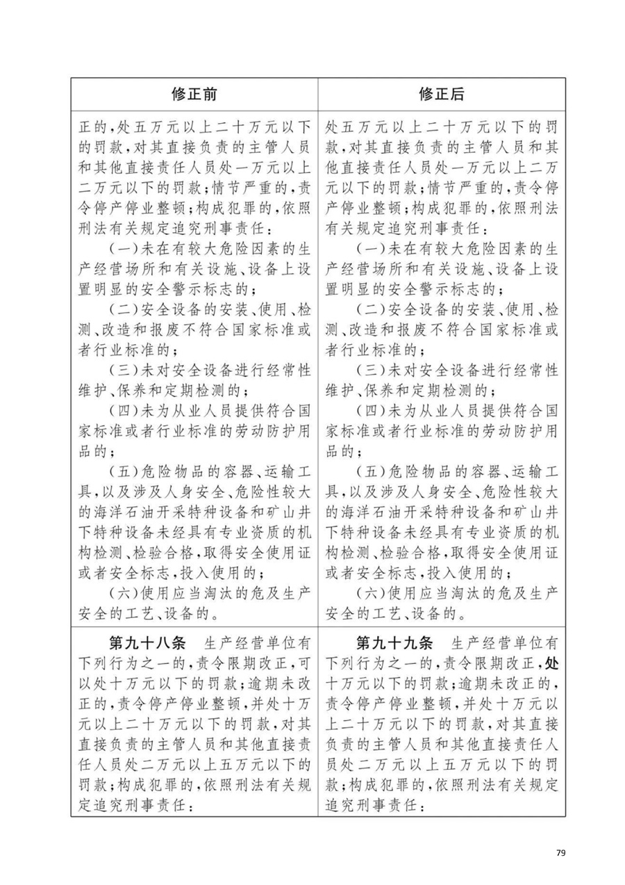 第九十八條生產(chǎn)經(jīng)營單位有下列行為之一的,責令停止建設(shè)或者停產(chǎn)停業(yè)整頓,限期改正,并處十萬元以上五十萬元以下的罰款,對其直接負責的主管人員和其他直接責任人員處二萬元以上五萬元以下的罰款;逾期未改正的,處五十萬元以上一百萬元以下的罰款,對其直接負責的主管人員和其他直接責任人員處五萬元以上十萬元以下的罰款;構(gòu)成犯罪的,依照刑法有關(guān)規(guī)定追究刑事責任: