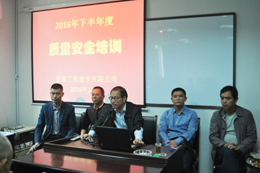 2016年10月18日,公司在江龍灘基地培訓中心舉辦了2016年度下半年質量安全培訓班,各施工項目部項目經理、施工員、安全員等參加了此次培訓。培訓班特邀市住建局質監站張漢兵站長、寧亮副站長到場授課。公司總工程師李偉重點向培訓班學員解讀了《建筑工程施工質量管理標準化指導手冊》。