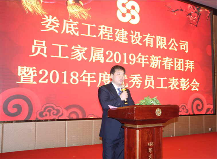 2019年2月13日,農(nóng)歷正月初九,婁底工程建設(shè)有限公司2019年新春團(tuán)拜暨2018年優(yōu)秀員工表彰會(huì)在婁底418華天大酒店泰山廳隆重舉行。來(lái)自全司各施工項(xiàng)目部、各所屬單位、機(jī)關(guān)部室、湘中礦業(yè)集團(tuán)婁底本部的員工及員工家屬共260余人參加了新春團(tuán)拜及優(yōu)秀員工表彰活動(dòng)。公司董事長(zhǎng)張愛(ài)慧先生、總經(jīng)理胡勁先生分別致辭,湘中礦業(yè)集團(tuán)總裁助理、法人代表聶武湘先生、戰(zhàn)略顧問(wèn)袁明毓先生參加了團(tuán)拜會(huì)并給優(yōu)秀員工頒獎(jiǎng)。表彰會(huì)后,公司全體員工合影留念并高唱《團(tuán)結(jié)就是力量》。會(huì)上還舉行了幸運(yùn)大抽獎(jiǎng)、歡樂(lè)運(yùn)輸、舞蹈表演、詩(shī)歌朗誦等豐富多彩的文體活動(dòng)。