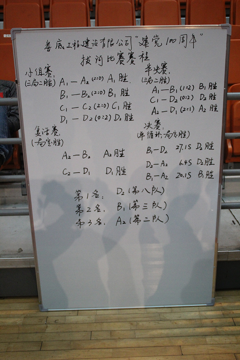 本次比賽根據(jù)隨機抽簽組隊,以“12人對12人拔河”,此次賽制分為淘汰賽、復活賽、半決賽、決賽四個階段。在比賽過程中,各隊人員都顯示出最強的比賽陣容,齊心協(xié)力,勇爭第一!為保證比賽的公平、公正、公開,賽會特設裁判1名,記錄員1名,維持秩序人員4名,另外還有現(xiàn)場攝影者1名。